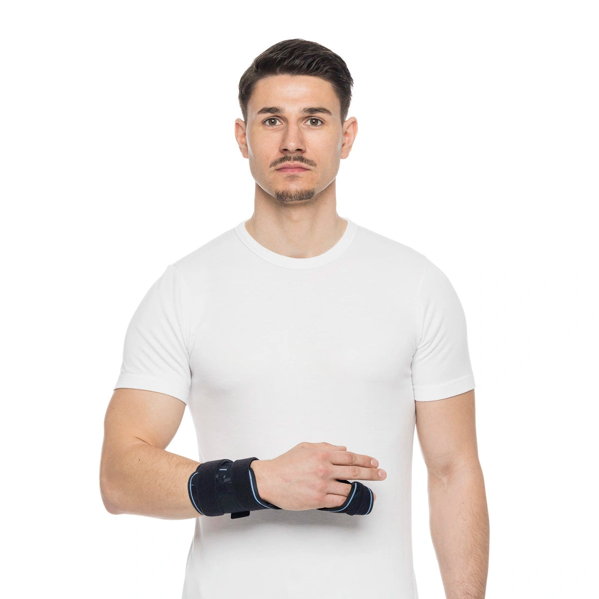 Une orthèse assurant une stabilité pour le poignet et la main, recommandé pour empêcher les mouvements de l'articulation afin de favoriser la consolidation osseuse. Adaptabilité optimale d'immobilisation de l'index et du majeur, anatomique au niveau de la main pour éliminer la fatigue musculaire. 1 baleine souple et amovibles, flexible à la forme de la main pour une immobilisation optimale. Une fermeture des doigts à fixation velcro.